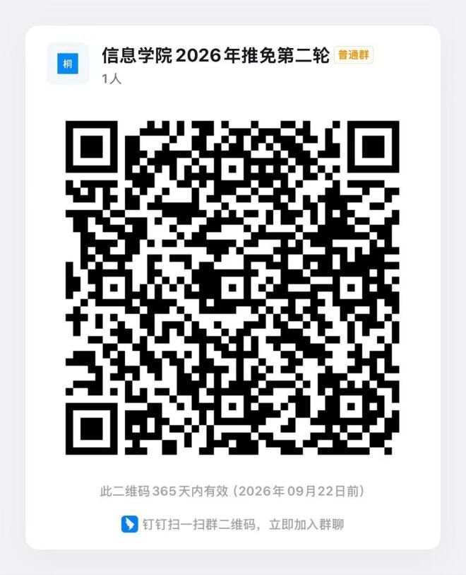 1.参与第二轮面试的同学务必扫码加入学院钉钉群,并修改备注为姓名-复试学科,以便后续复试通知。