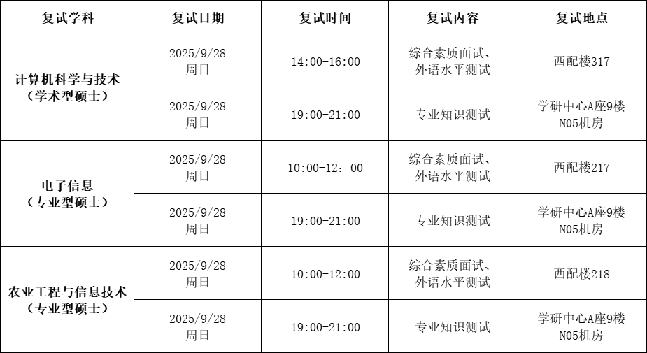 目前推免名额有剩余的学科包括:计算机科学与技术、电子信息、农业工程与信息技术、低空技术与工程。以下为各学科第二轮复试具体安排: